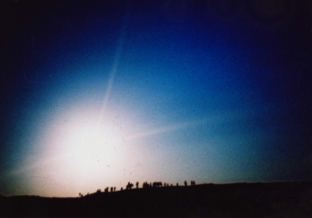 写真のシルエットの人たちもラクダに乗っています。